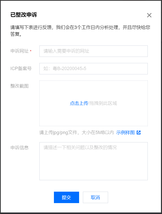 如果提示未標紅域名請轉到微信或QQ內打開對應申訴的網址,點“申請恢復訪問”,成功率比較底。